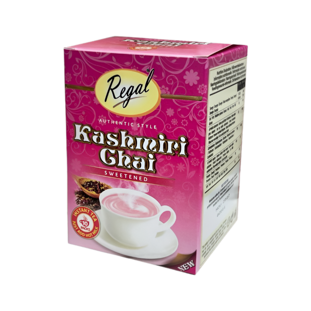 Prepare Regal Kashmiri Chai Sweetened according to the directions on the package, adjusting the strength to your taste. Brew with hot water, or a mix of water and milk, and allow the spices to infuse fully before serving. Enjoy it plain, or garnish with your favourite additions. For more inspiration, explore other Kashmiri chai options and discover complementary chai teas to round out your tea collection.