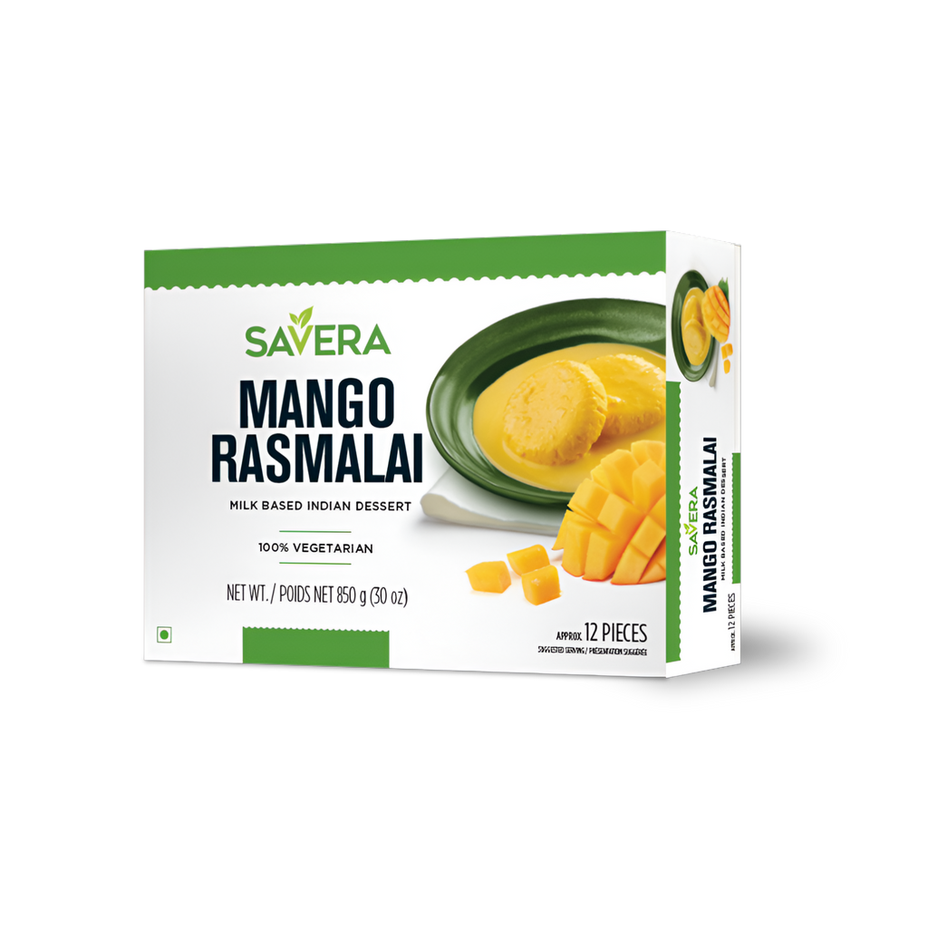Embrace the exotic blend of traditional Indian flavors with a tropical twist in Savera Mango Rasmalai, now in a convenient frozen form. This delightful dessert marries the soft, spongy texture of classic rasmalai with the luscious, rich taste of mangoes, creating a truly unique and irresistible treat. The frozen aspect not only ensures easy storage and longevity but also retains the freshness and authentic flavors of this exquisite sweet.