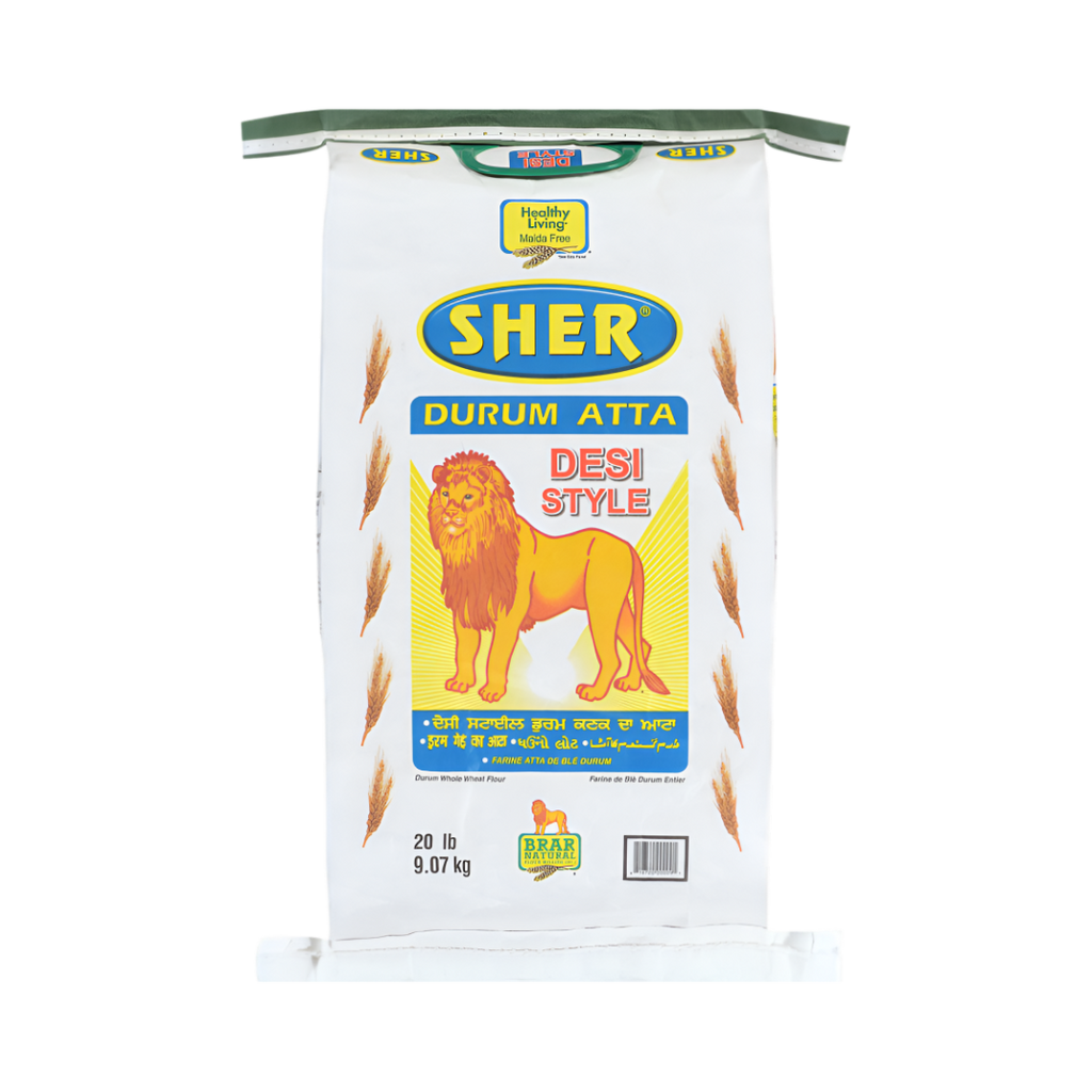 Discover the authentic taste of traditional Indian cooking with Sher Durum Atta Desi Style Flour. This high-quality durum wheat flour is expertly milled to perfection, ensuring a fine, smooth texture ideal for creating soft, fluffy rotis, chapatis, and parathas. Known for its rich flavor and nutritional benefits, Sher Durum Atta brings the essence of home-cooked meals to your kitchen.