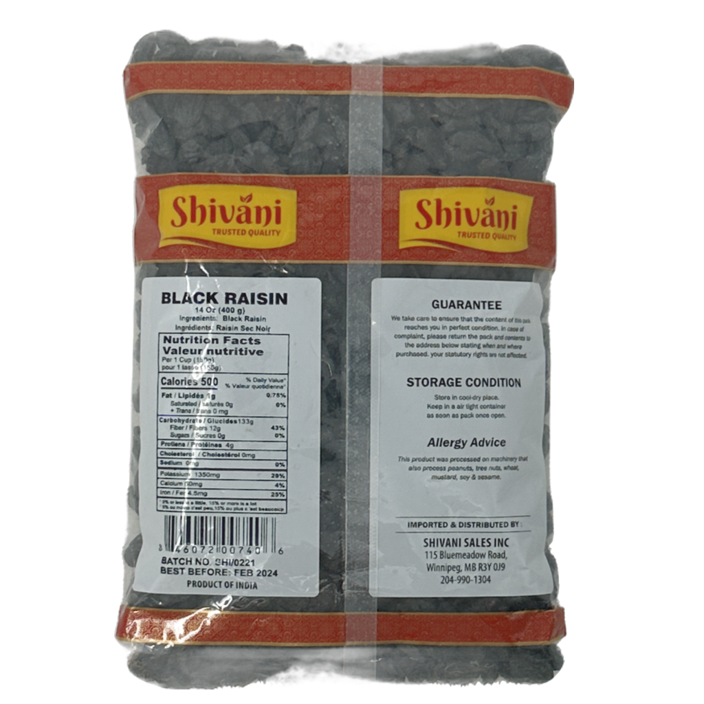 Experience the joy of adding Shivani Black Raisins to your culinary repertoire and bring a bit of India's vibrant culture and tradition to your Canadian kitchen. Their natural sweetness, health benefits, and versatility make them a must-have for anyone passionate about exploring the flavors of India.