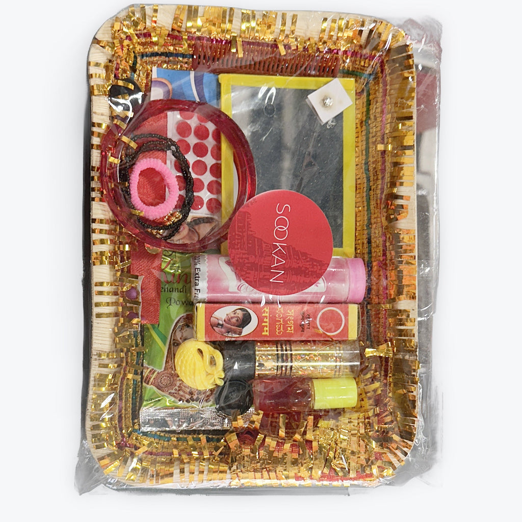 Sookan Pooja Singar Set is a thoughtfully curated collection of essential items used in Hindu religious ceremonies and daily worship. This comprehensive set includes all the traditional offerings needed to perform a pooja, such as kumkum, haldi (turmeric), sandalwood paste, diya (oil lamp), incense sticks, and more. Each item holds cultural and spiritual importance, ensuring that your pooja is both authentic and meaningful.