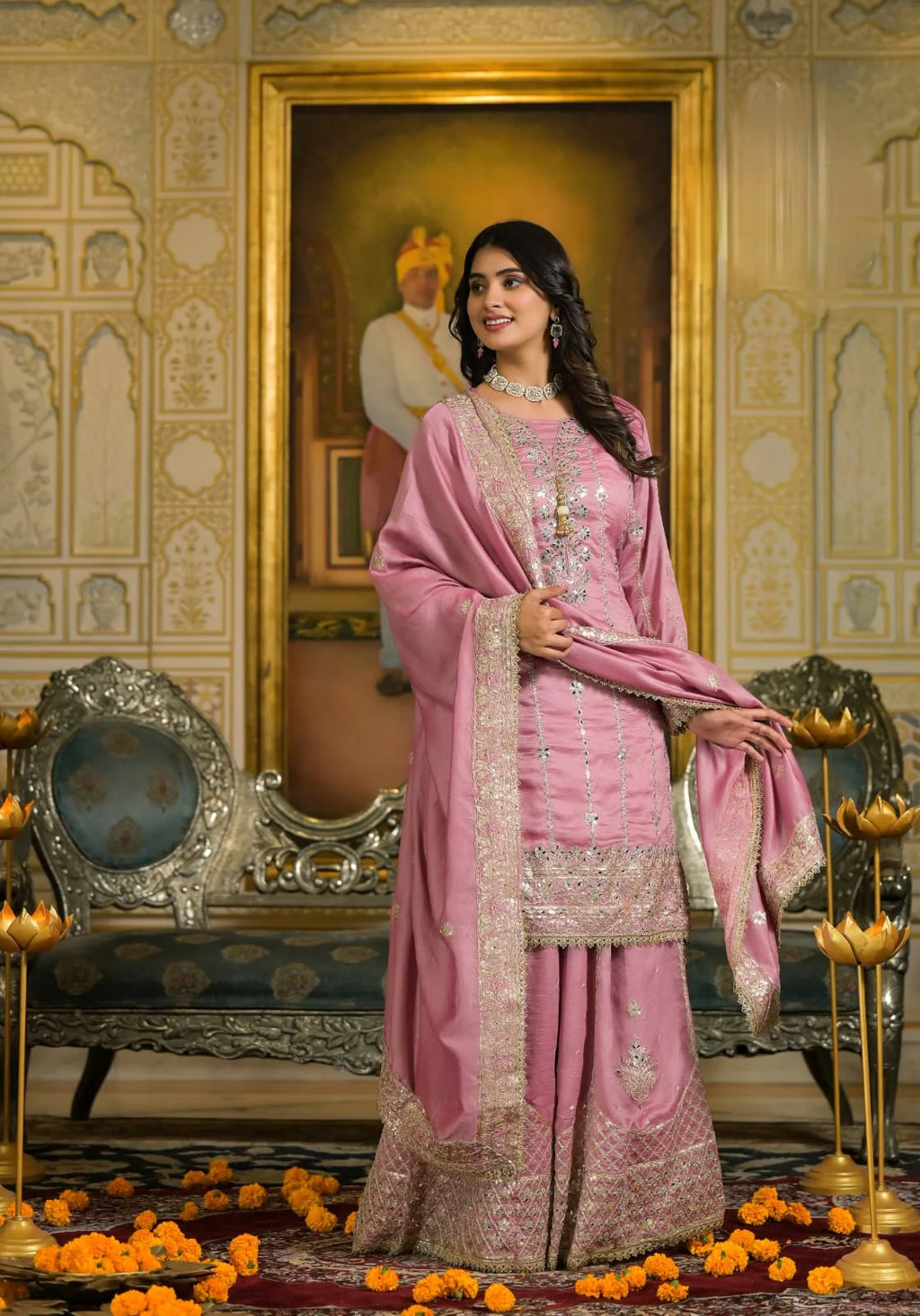 Suvesha Sharara Set With Heavy Embroidery - Pink