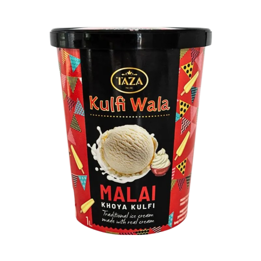 Taza Kulfi Wala Malai Khoya Kulfi in a 1L pack is an exquisite frozen dessert that offers a taste of India's rich and creamy kulfi. Kulfi, often described as the traditional Indian version of ice cream, is cherished for its dense texture and intense flavors. This Malai Khoya variant from Taza is a celebration of classic kulfi, crafted with premium ingredients to deliver an authentic and indulgent experience.