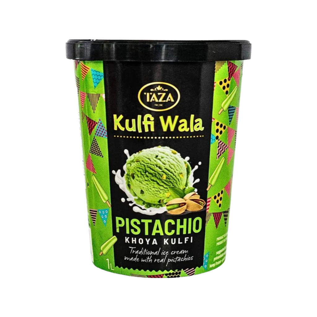Taza Kulfi Wala Pistachio Khoya Kulfi in a 1L pack is an indulgent frozen dessert that perfectly encapsulates the essence of traditional Indian kulfi with a delightful pistachio twist. Renowned for its dense, creamy texture and rich flavors, kulfi is a cherished treat in the Indian subcontinent. This pistachio-infused variant combines the nutty elegance of pistachios with the creamy depth of khoya, a key ingredient in many classic Indian sweets.