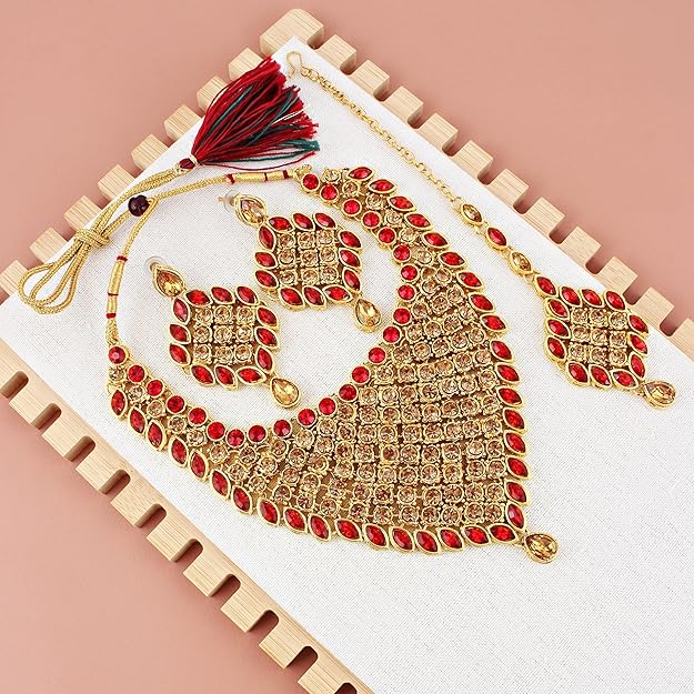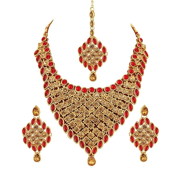 Tehzeeb CreationDesigner Gold Plated Elegant Stone Necklace Set For Women & Girls THZ406