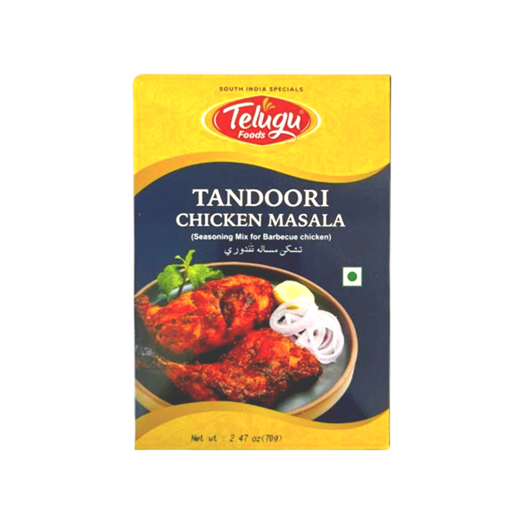 Telugu Foods Tandoori Chicken Masala is meticulously crafted with a harmonious blend of spices including paprika, cumin, coriander, garam masala, and garlic, each contributing to the rich color and bold flavors characteristic of tandoori dishes. Whether you're grilling, roasting, or baking, this masala ensures your chicken is infused with the authentic taste and enticing aroma of a tandoori oven.