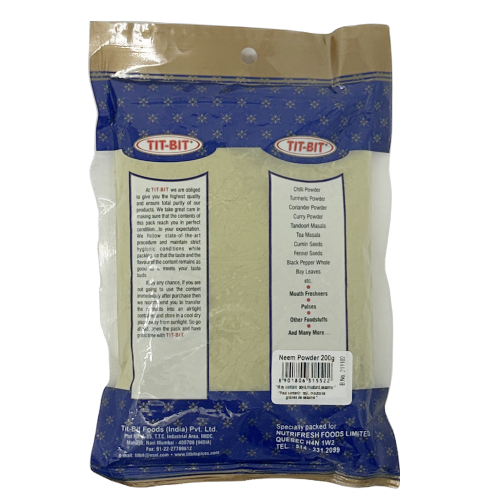 Embrace the natural goodness of Tit Bit Neem Powder, a staple in Indian wellness practices, now available for your health-conscious lifestyle in Canada. Derived from the neem tree, which is revered in India for its medicinal properties, this powder is a treasure trove of benefits for both health and beauty.