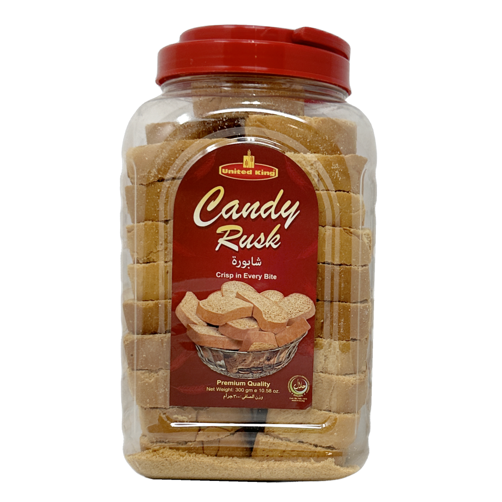 Originating from the popular South Asian tradition of enjoying rusks, a type of hard, dry biscuit or twice-baked bread, United King has taken this concept to a new level. The Candy Rusk stands out with its subtle sweetness, making it a versatile snack for any time of the day. Whether you're dipping it in your morning tea or enjoying it as a standalone snack, its crispy texture and distinctive flavor are sure to delight.