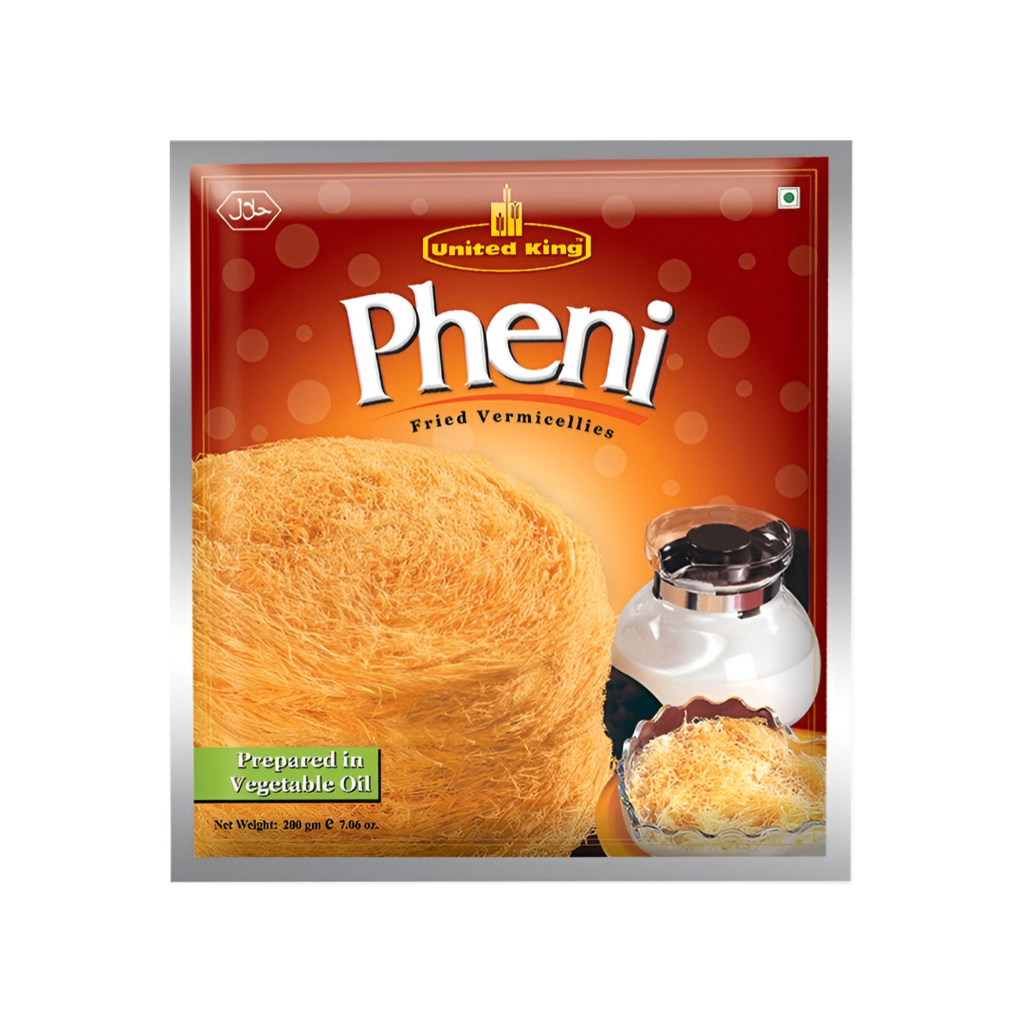 United King ensures a high-quality product made with simple ingredients such as wheat flour, salt, and hydrogenated vegetable oil, offering a taste reminiscent of the subcontinent's rich culinary heritage. Each pack of Pheni is carefully prepared to deliver a taste that transports you to the festive streets of India and Pakistan, letting you experience the authenticity and traditions tied to this delightful dessert.