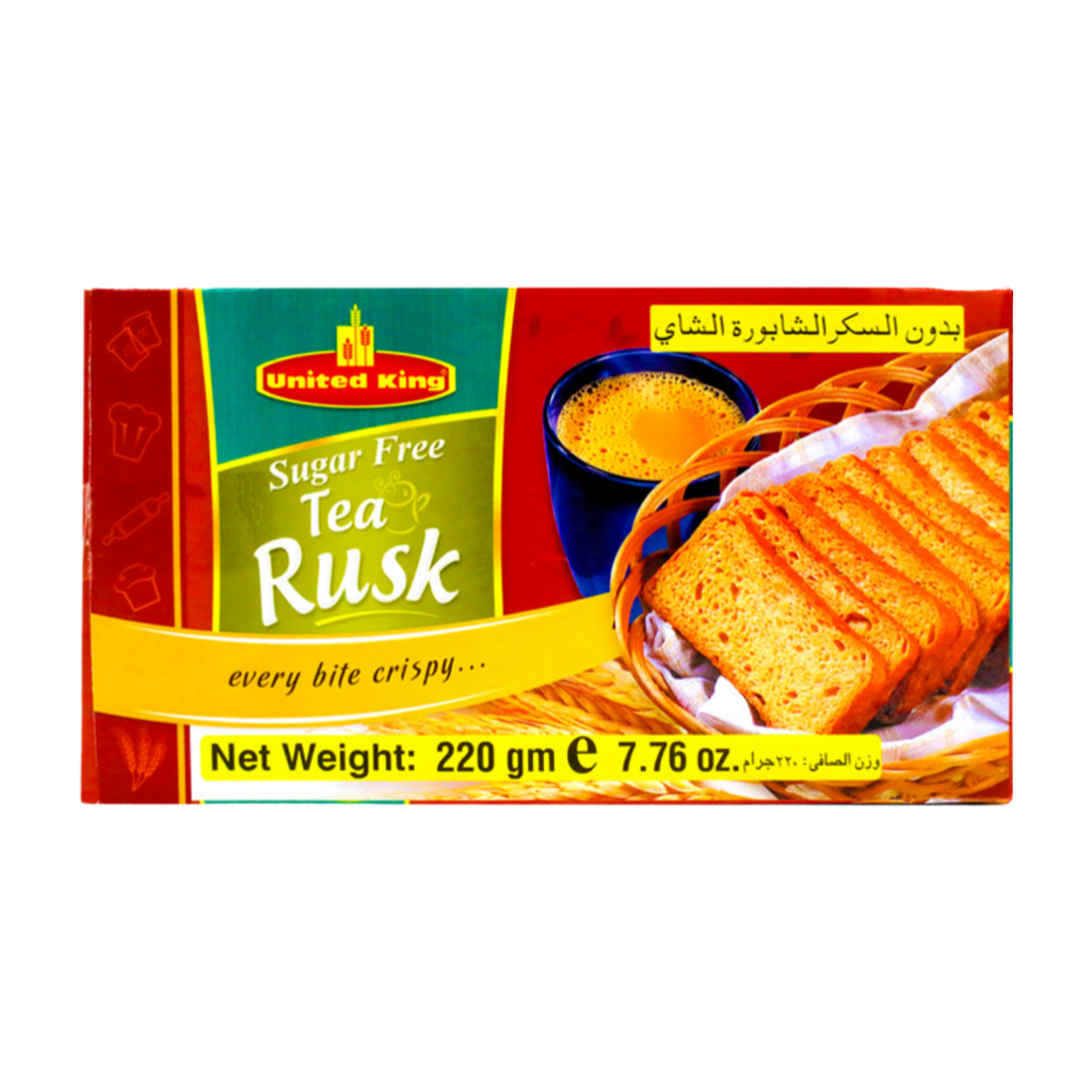 Delight in the crispness of United King Sugar Free Tea Rusk, a perfect companion to your chai or coffee. Hailing from the reputable brand United King, this 220g pack of rusks is tailored for those seeking to minimize sugar consumption while still indulging in a tasty treat. Each rusk is baked to perfection, offering a light, crunchy texture that pairs wonderfully with your hot beverages.
