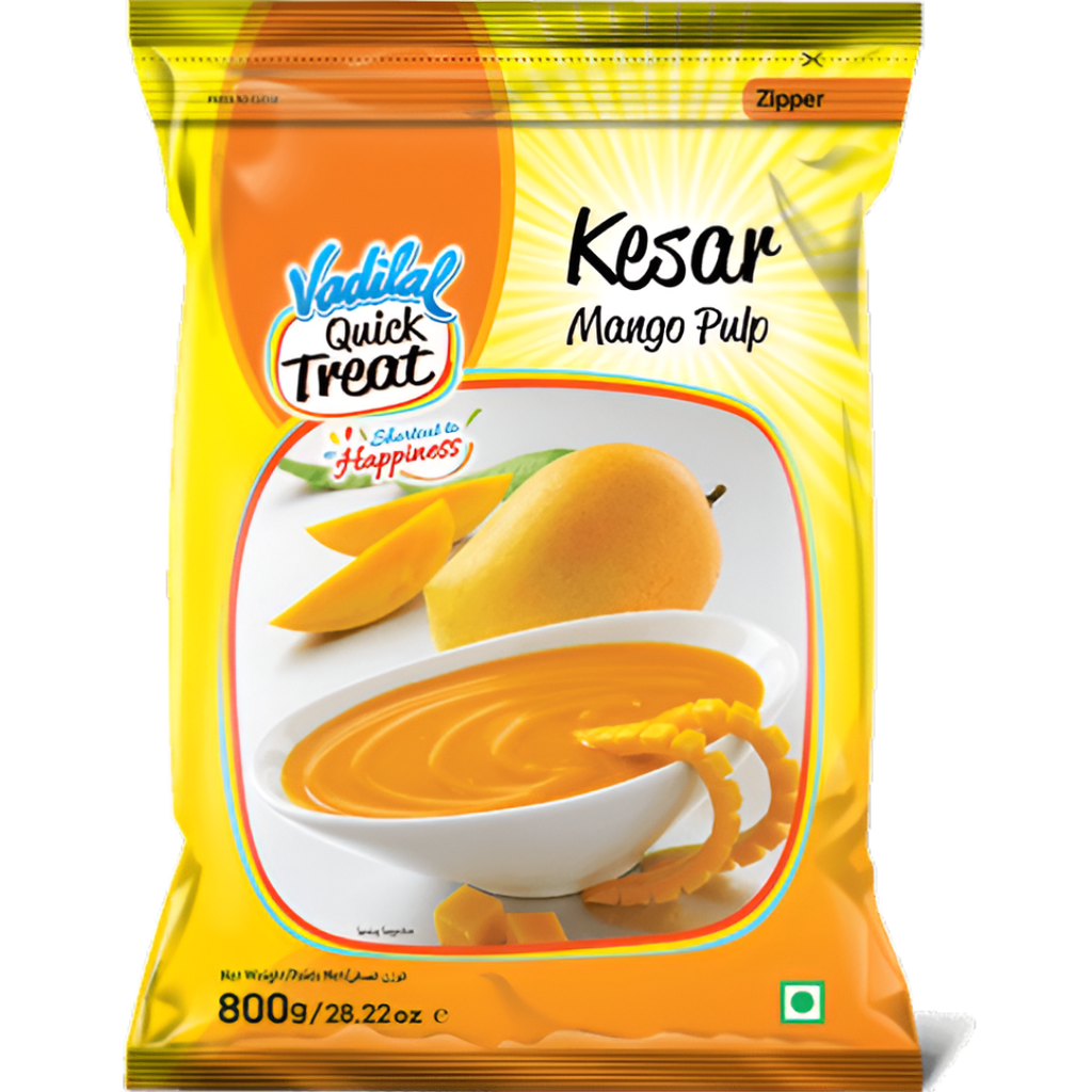 "Vadilal Frozen Kesar Mango Pulp" offers the taste of premium Alphonso mangoes in a convenient and ready-to-use form. Made from the finest handpicked Kesar mangoes, this pulp captures the essence of the fruit's rich, aromatic flavor and vibrant color.