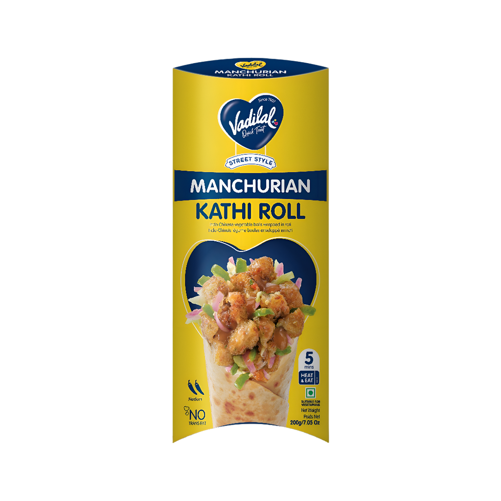 The Indo-Chinese Manchurian is a classic in Indian fast food culture — known for its irresistible combo of sweet, spicy, and umami flavors. Wrapped in a kathi roll, it creates a modern twist on traditional Indian snacking. Vadilal captures this fusion magic and makes it freezer-ready for quick meals or anytime cravings.