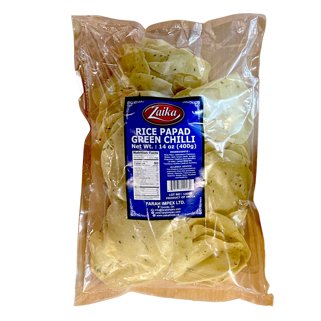 Zaika Green Chilli Rice Papad offers a delightful fusion of crispiness and zesty flavors, perfect for those who appreciate a mild yet tantalizing spicy kick in their snacks. Crafted from high-quality rice flour and infused with the fresh, piquant taste of green chillies, these papads are a twist on the traditional Indian papadum.