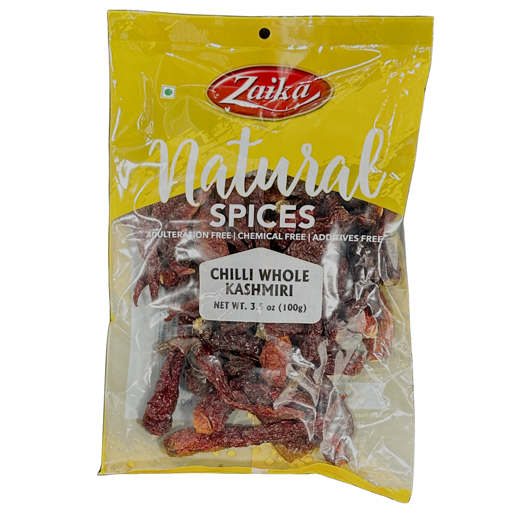 Discover the unique and flavorful Zaika Kashmiri Chilli Whole 100g, an essential spice for those who appreciate the rich traditions of Indian cuisine. Known for its vivid red color and mild, nuanced heat, this chilli brings authentic Kashmiri character to everyday cooking and celebratory feasts alike.